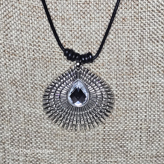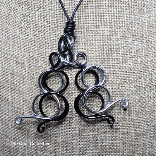 Silver & Black Coiled Aluminum Wire Pendant on Adjustable Black Leather Necklace