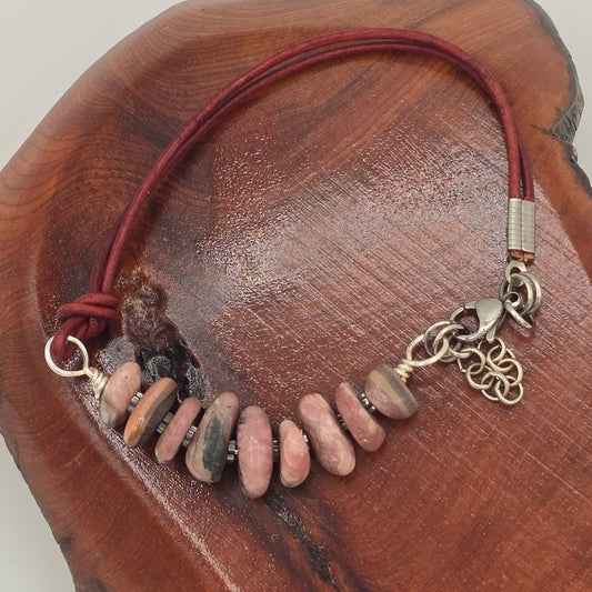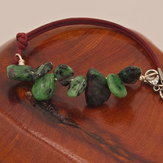Ruby in Zoisite Paddles on Natural Turkish Red Leather Bracelet