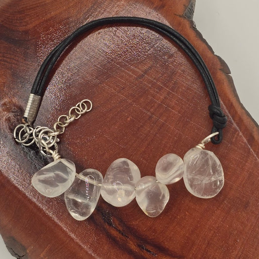 Rock Crystal Quartz Paddles and Black Leather Bracelet