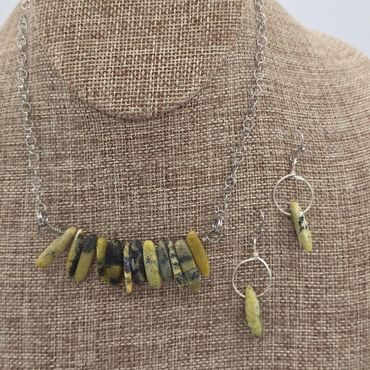 Serpentine Bar Necklace & Earrings on Stainless Steel Chain and Ear Wires
