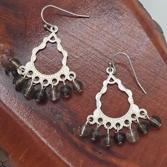 Smoky Quartz Rounds on Silver Tone Chandeliers
