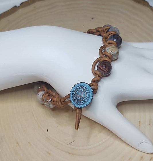 Sea Sediment Jasper on Natural Tan Leather and Blue Patina Button