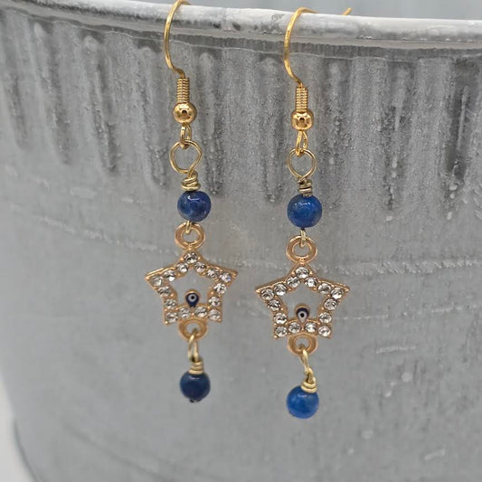 Sparkly Star With Evil Eye Protector & Sodalite Earrings on Gold Tone Ear Wires