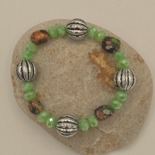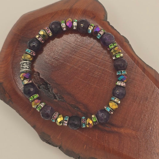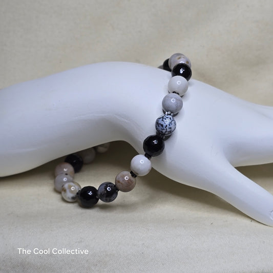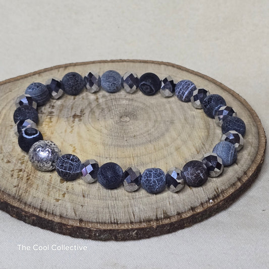 STRETCH Matte Black Banded Agate and Gray Crystals Bracelet