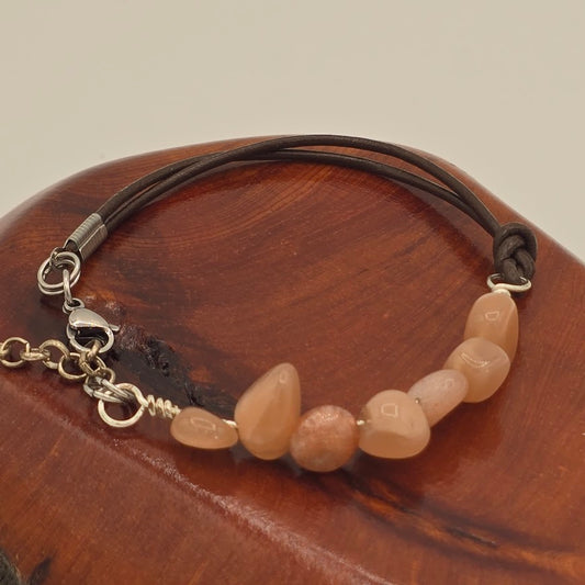 Sunstone Nuggets with Dark Brown Leather Bracelet
