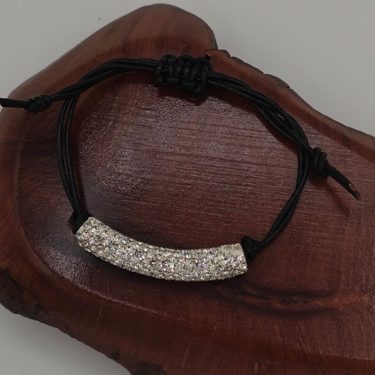 Sparkly Focal on Adjustable Black Leather Bracelet