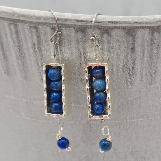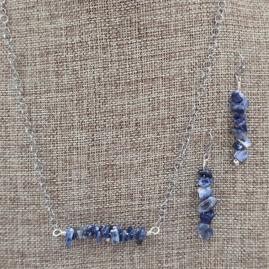Sodalite Bar Necklace & Earrings Set on Stainless Steel Chain and Ear Wires