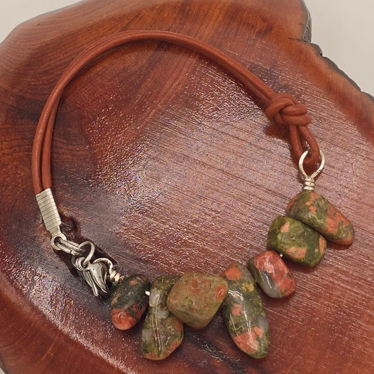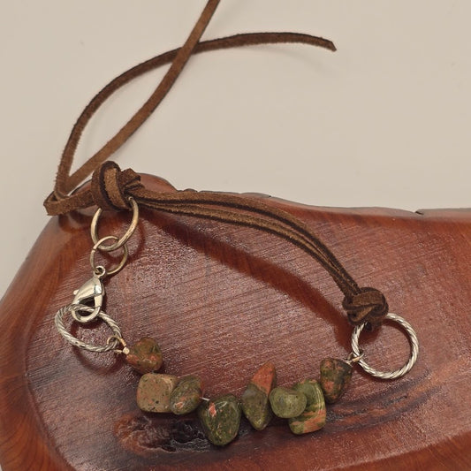 Unakite Nuggets & Dark Brown Suede Lace Adjustable Bracelet