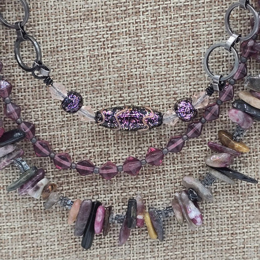 Triple-Strand Tourmaline and Czech Glass Necklace
