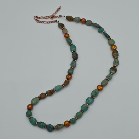 Turquoise Nuggets & Stunning Copper Pearls Necklace