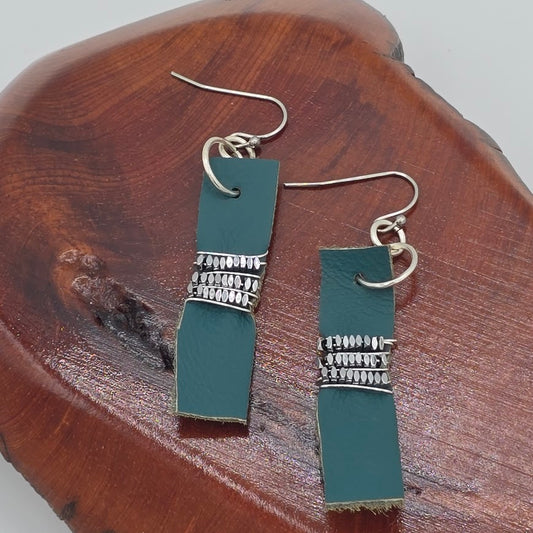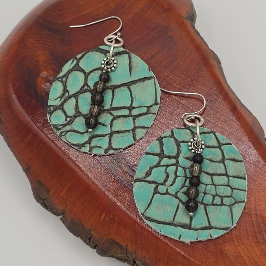 Teal & Gray Reptile With Smoky Quartz on Stainless Steel Ear Wires