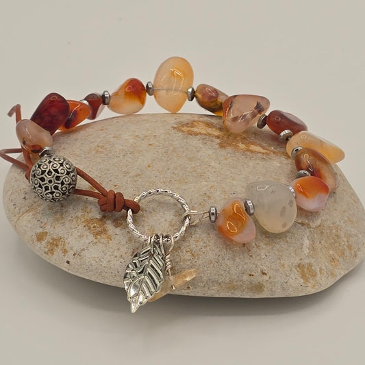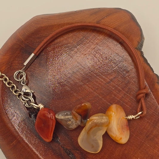 Carnelian Paddles on Medium Brown Leather Bracelet