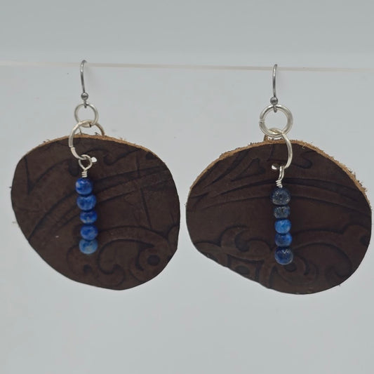 Brown Print Leather With Sodalite on Stainless Steel Ear Wires