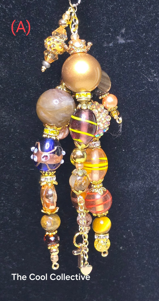 Browns & Goldens - Purse Charm, Suncatcher, Mirror Charm, Bookmark, Backpack Charm, Keychain, Wristlet Charm, Ornament - With Lobster Clasp and Gold Tone Cross