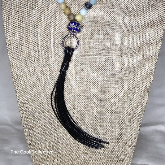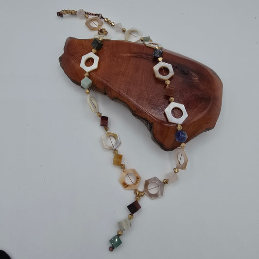 Mother of Pearl Hexagons "Y" Necklace With Assorted Gemstones