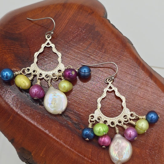 Multicolor Freshwater Pearls Chandelier Earrings on Stainless Steel Ear Wires