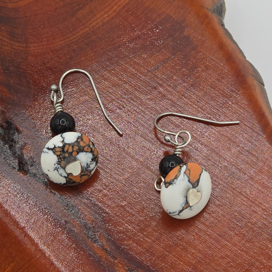 Mosaic Stone Rondelles & Black Banded Agate Earrings on Stainless Steel Ear Wires