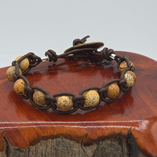 Picture Jasper & Dark Brown Leather Macrame With Nautical Button