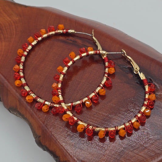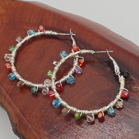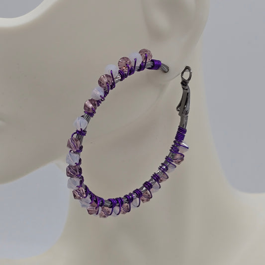 Swarovski Crystals - Purple & Translucent White Hoops Earrings