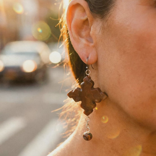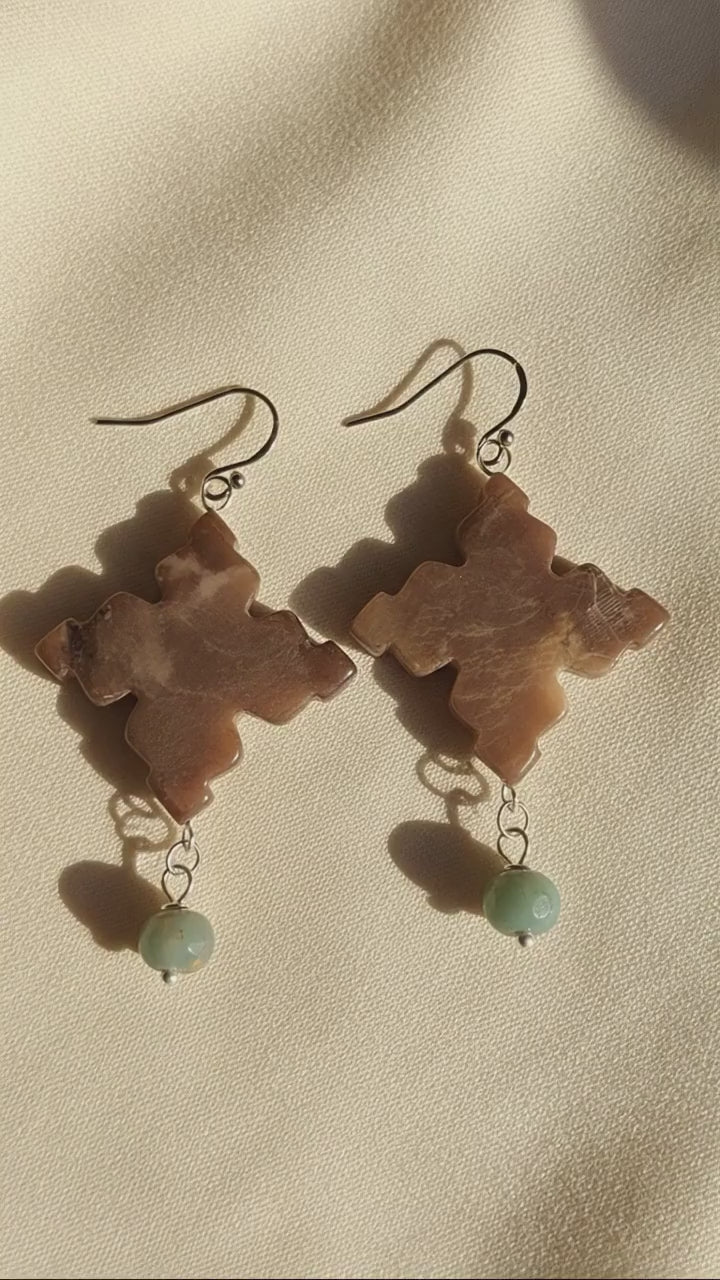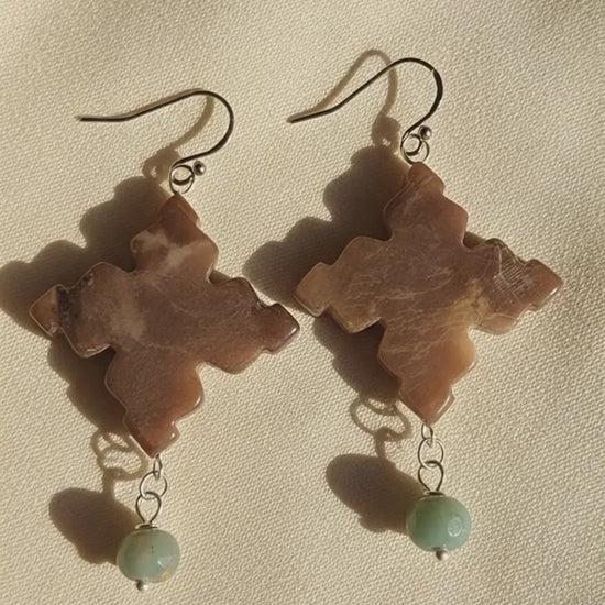 Celebrate natural beauty with these striking earrings featuring African Opal Jasper and Celtic Cross jasper stones. Each pair showcases the unique patterns and warm earth tones that make jasper so captivating, suspended from durable stainless steel ear wires. Perfect for those who appreciate handcrafted jewelry with genuine gemstone character. These versatile pieces complement any style while connecting you to the grounding energy jasper is known for. A thoughtful choice for everyday wear or a meaningful gift. Earring length is 2-1/4" from drop of ear wire.